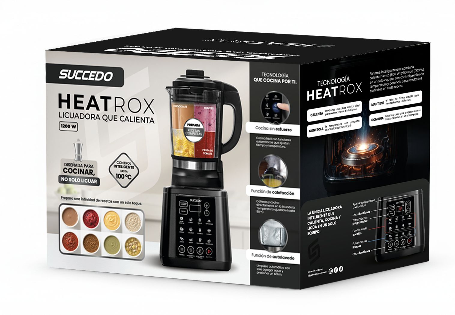 La HEATROX de Succedo es la licuadora más robusta y avanzada de su categoría. Con mayor capacidad, más potencia de calentamiento y funciones automatizadas, no solo licúa: cocina una amplia variedad de recetas, se limpia sola y transforma la rutina en eficiencia y sabor.